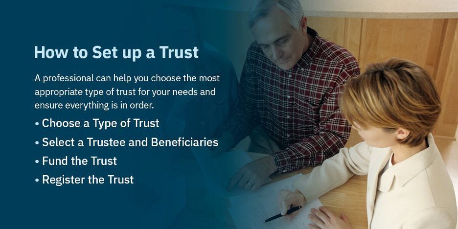 One way to direct where your assets go, skip the probate process after your death, and potentially minimize estate taxes is to set up a trust. Learn more about what a trust is, the benefits of establishing one, and how to go about setting it up.